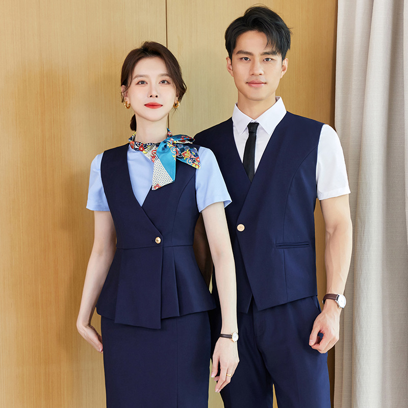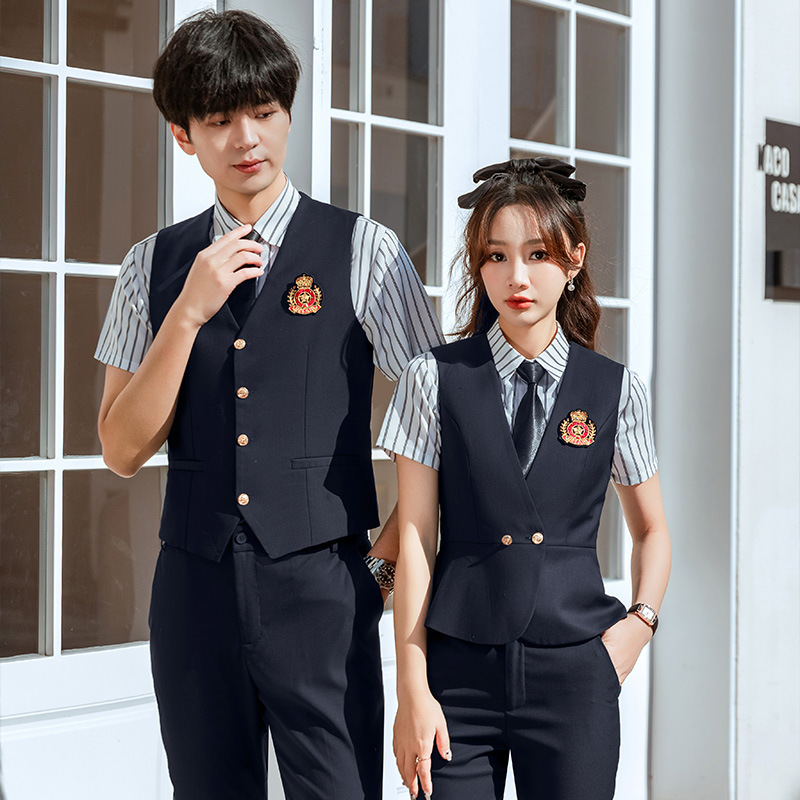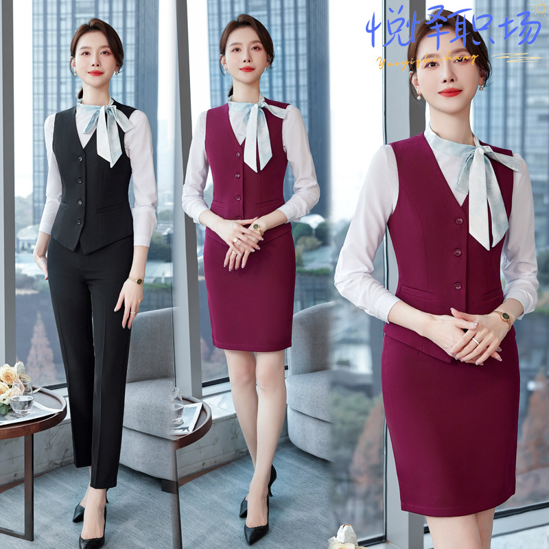 Setelan rompi setelan profesional untuk wanita berkualitas tinggi musim panas kasir pelayan pakaian kerja salon kecantikan hotel meja depan pakaian kerja untuk wanita