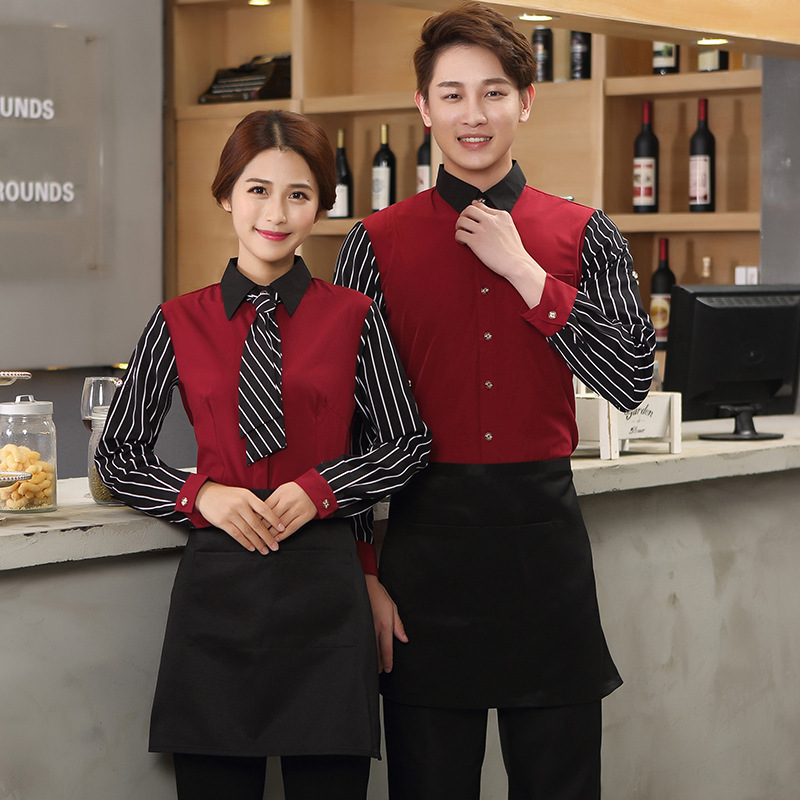 Pakaian kerja pelayan katering Hotel pria wanita, pakaian kerja lengan panjang restoran Barat bar KTV kopi pot panas Toko musim gugur dan musim dingin pria