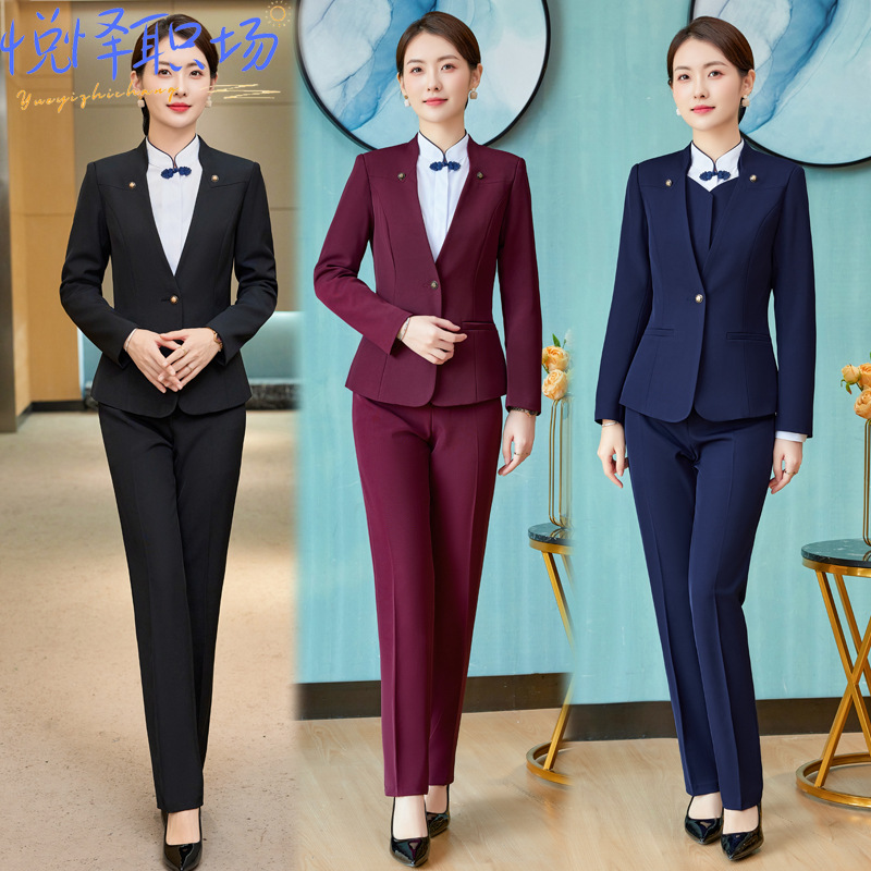 Setelan bisnis pakaian kerja pelayan meja depan hotel wanita pakaian kerja layanan pelanggan pakaian kerja pria dan wanita gaya sama departemen penjualan pakaian kerja musim gugur