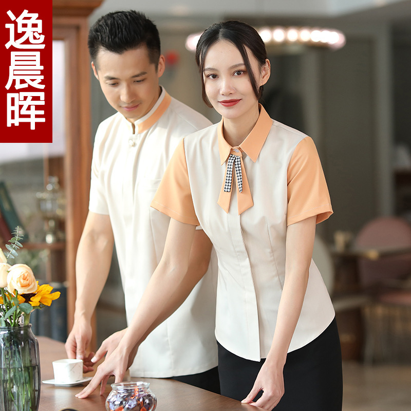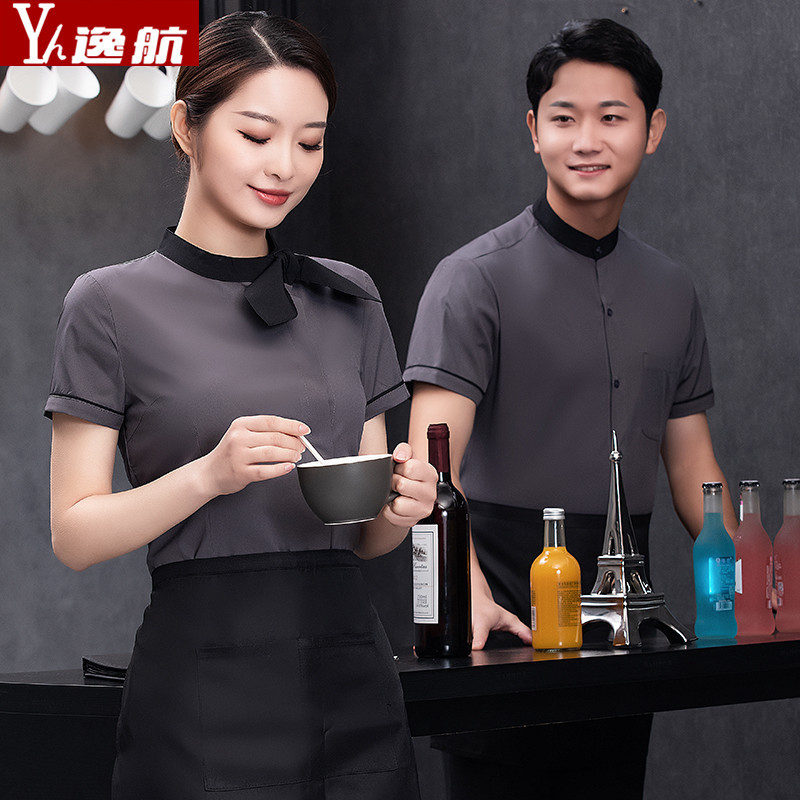 Baju kerja pelayan Hotel lengan pendek restoran cina rumah teh pakaian katering restoran hot pot restoran pakaian kerja pria dan wanita musim panas