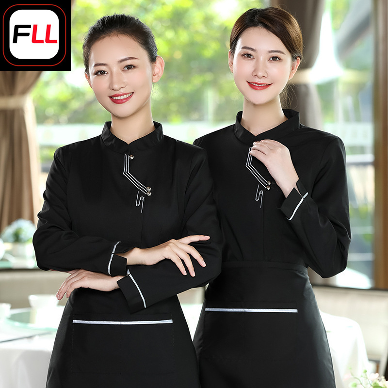 Pakaian kerja pelayan katering, baju pelayan, baju kerja lengan panjang, mantel pot panas, Makanan Cepat, restoran, Kedai Kopi, pakaian kerja supermarket musim gugur dan musim dingin untuk wanita