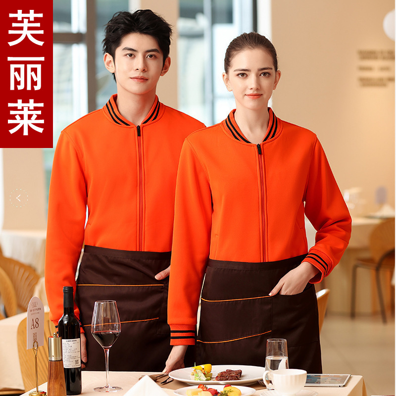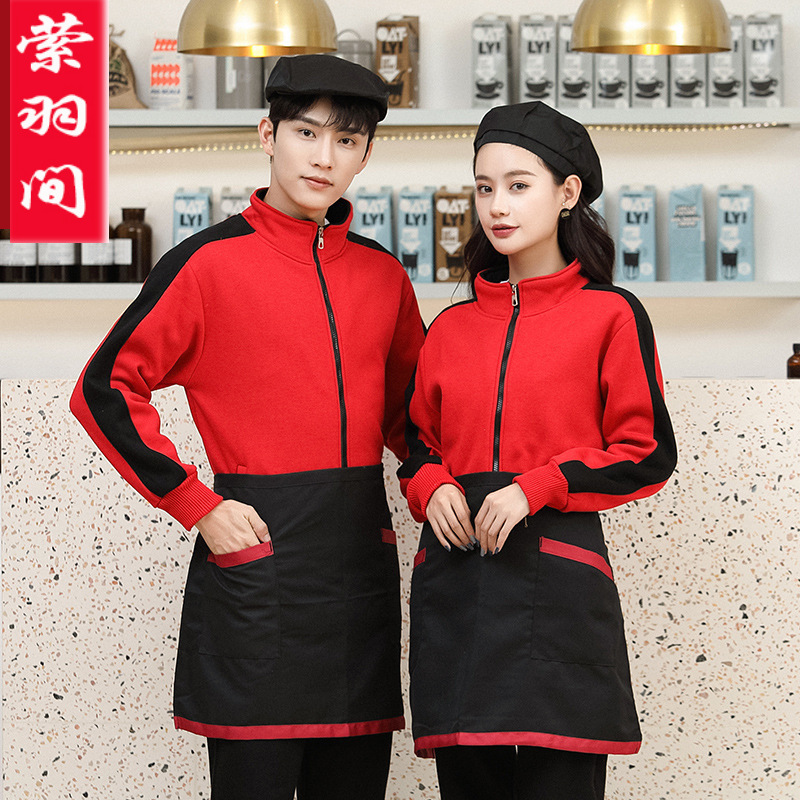 Baju kerja pelayan katering, baju sweater tebal lengan panjang musim gugur dan musim dingin pot panas restoran restoran toko susu teh pakaian kerja