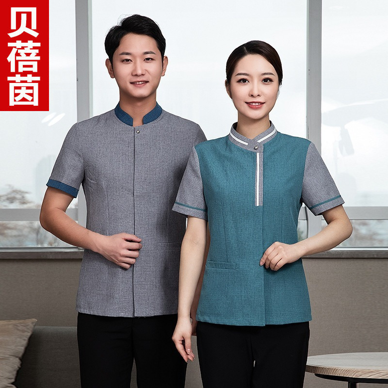 Pakaian kerja pembersih pria, lengan pendek musim panas properti rumah sakit KTV Hotel kamar pembersih pelayan wanita