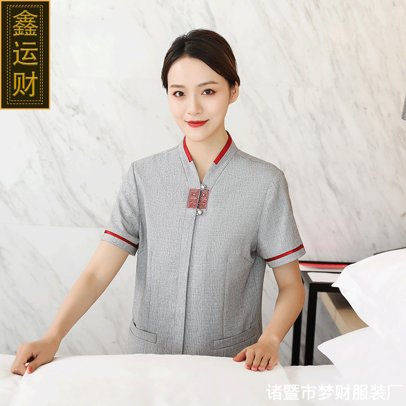 Pakaian kerja membersihkan Hotel wanita Properti ruang komunitas pakaian pelayan rumah tangga Bibi setelan lengan pendek musim semi dan musim panas