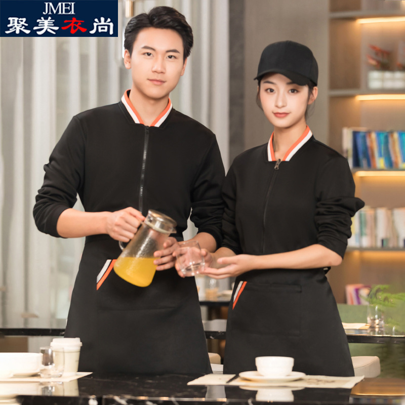 Pakaian Kerja Pelayan Sweater Lengan Panjang Makanan Kustom Hot Pot Hotel Musim Gugur Musim Dingin Ditambah Beludru Pakaian Kerja Supermarket Pria Wanita