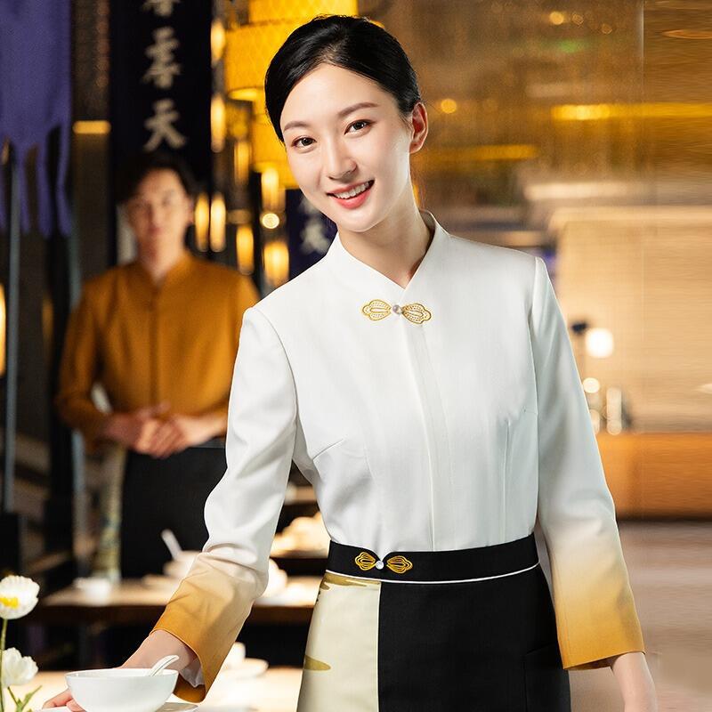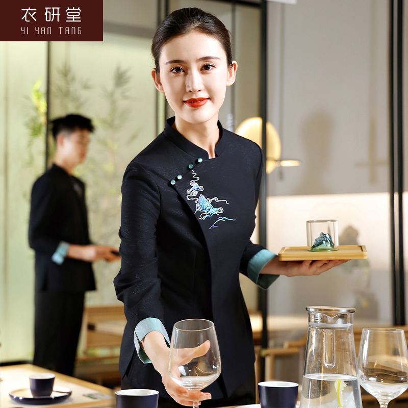 Yiyantang baju kerja pelayan hotel, lengan panjang China high-end banquet restoran katering pot panas restoran pakaian musim gugur dan musim dingin untuk wanita