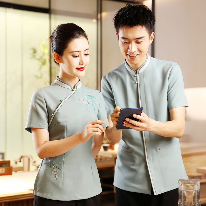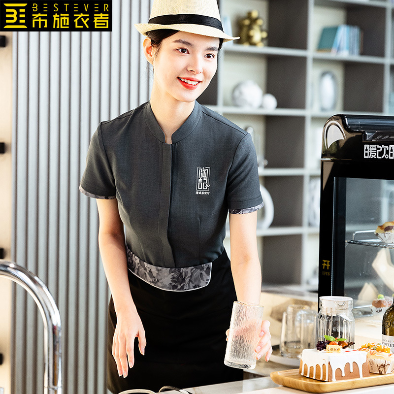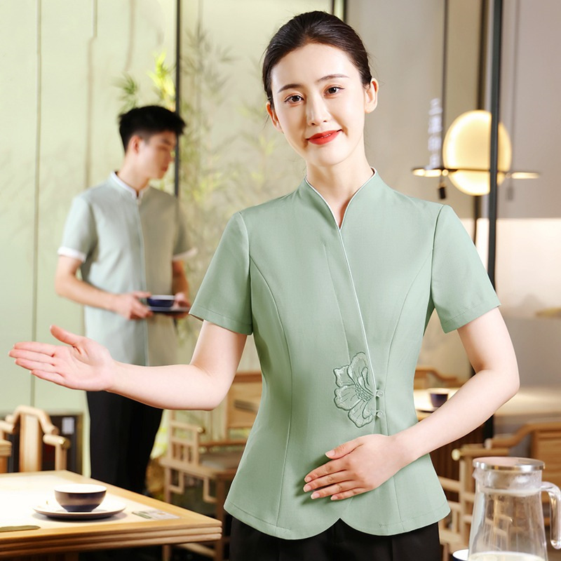 Yiyantang pelayan hotel pakaian kerja wanita baru Cina kelas atas katering rumah teh Cina restoran kustom musim panas lengan pendek