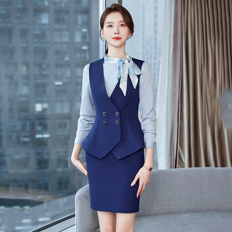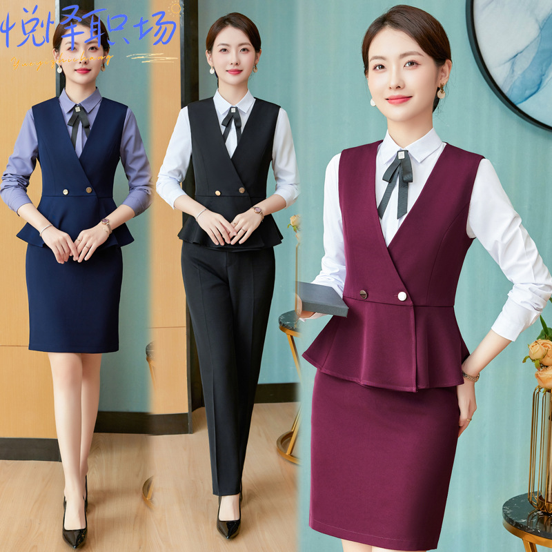 Setelan rompi wanita, musim semi dan musim gugur gaya preppy hotel meja depan pakaian kerja pelayan pakaian kerja profesional setelan rompi wanita grosir