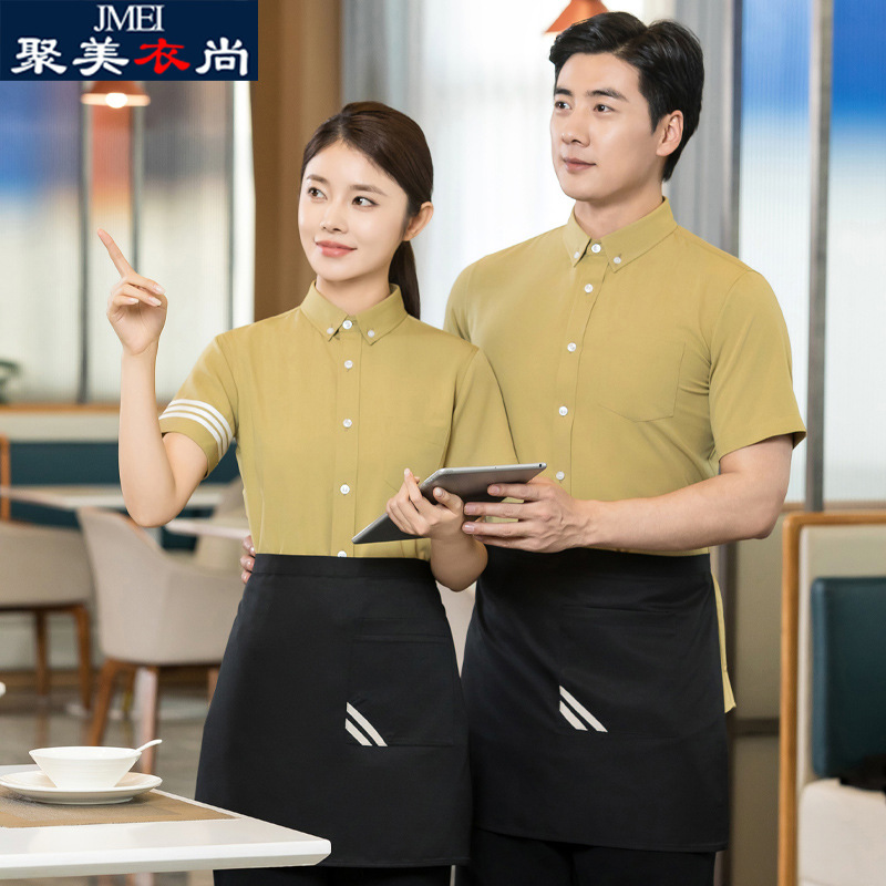 Baju kerja pelayan katering Hotel baju lengan pendek KTV rompi kopi restoran musim panas pakaian kerja logo cetak