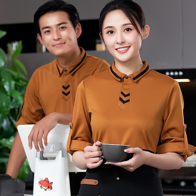 Pakaian Kerja Katering Model Saku T-Shirt Makanan Cepat Saji Khusus Burger Hot Pot Teh Susu Barbekyu Pelayan Musim Panas Lengan Pendek Wanita