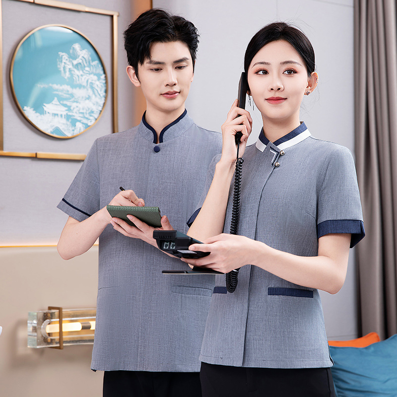 Baju kerja Hotel lengan pendek, pakaian pembersih bibi, Pembersih properti ruang kerja, lengan pendek musim panas