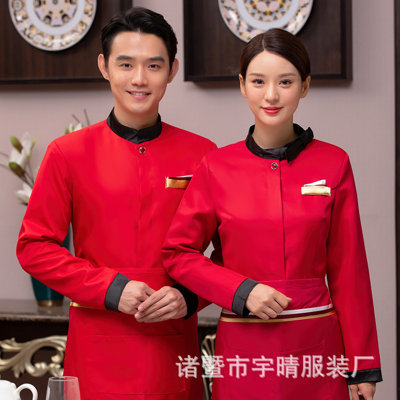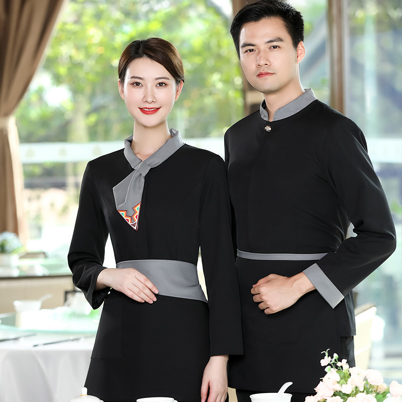 Baju kerja pelayan wanita, pakaian katering lengan panjang China hotel restoran meja depan staf pria dan wanita musim gugur dan musim dingin