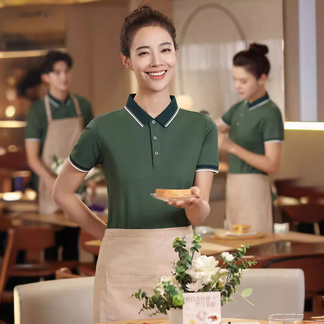 Kaus pakaian kerja logo lengan pendek, kemeja polo pakaian kerja pelayan supermarket ruang KTV Hotel teh susu katering