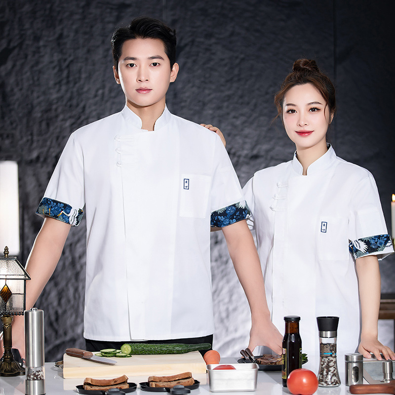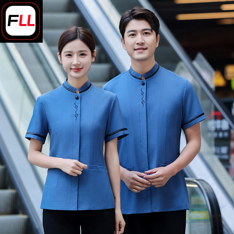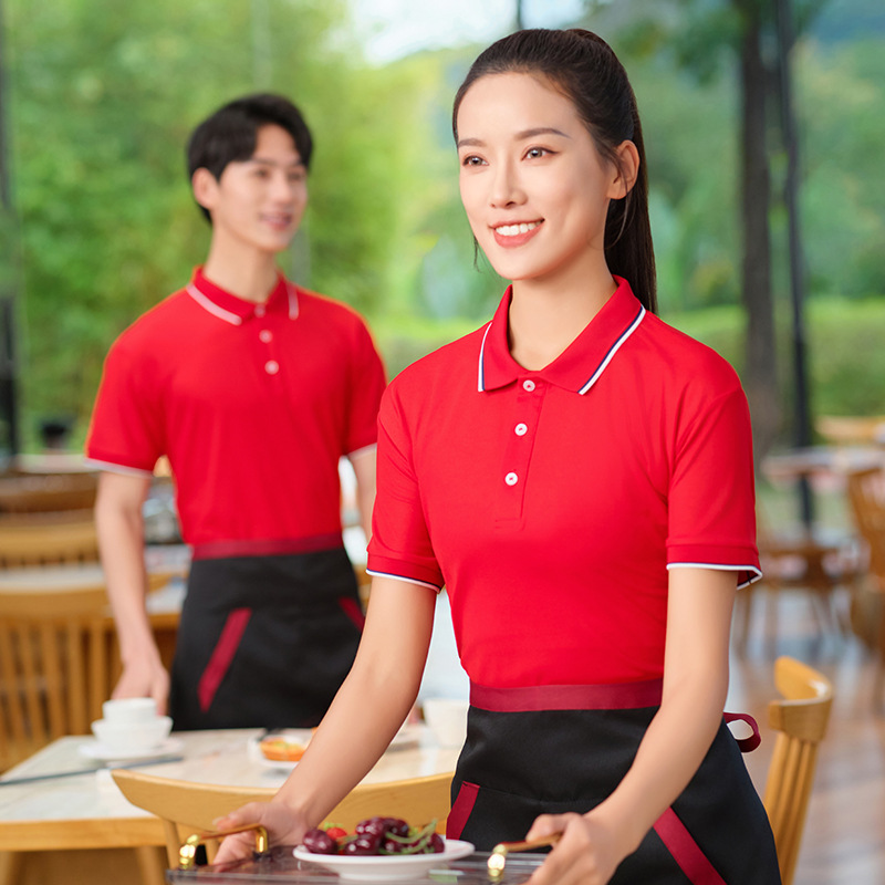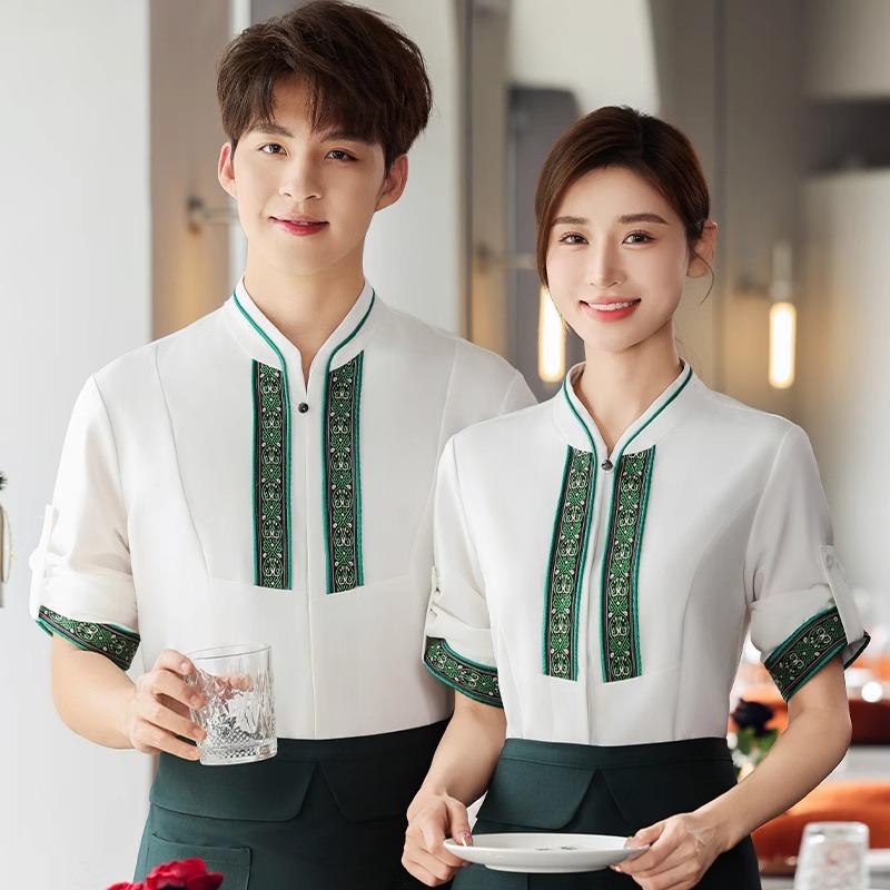 Pelayan baju kerja Pria Wanita lengan pendek, pakaian kerja musim panas restoran hotel katering restoran restoran Cina restoran bernapas