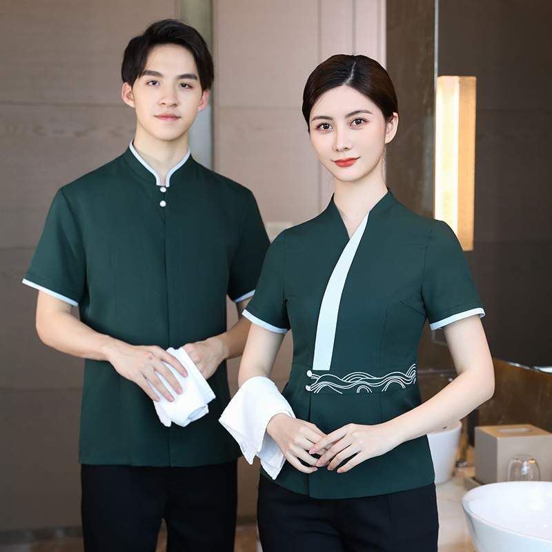 Pakaian pembersih lengan pendek, pakaian kerja petugas Hotel kamar mandi, musim semi dan musim panas, properti PA cleaner
