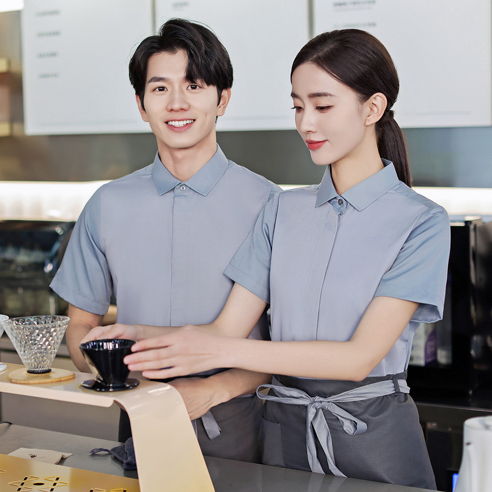 Kedai kopi baju kerja pelayan spesial, lengan pendek musim panas teh susu memanggang katering restoran Barat baju kerja meja depan