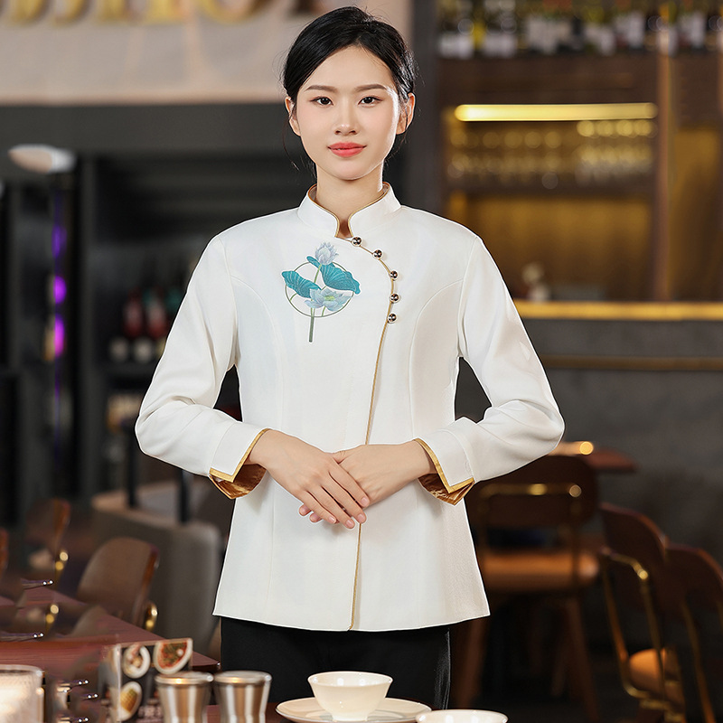 Baju kerja pelayan Tiongkok, baju kerja wanita lengan panjang, pakaian musim gugur dan musim dingin, rumah teh, restoran Barat, untuk restoran, panci panas, baju kerja, Hotel
