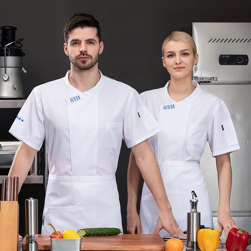 Pakaian koki lengan pendek pria, baju kerja pelayan, hotel, baju dapur, musim panas, tipis, nyaman, lengan pendek, pakaian koki untuk pria