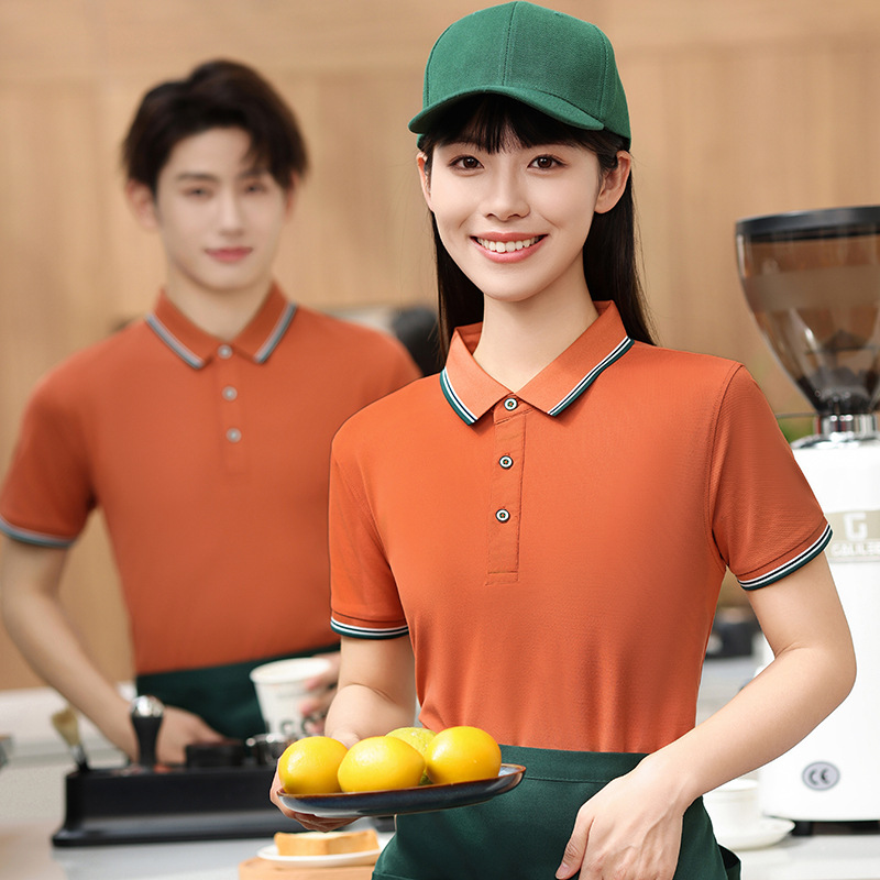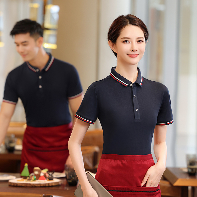 Baju kerja pelayan katering musim panas, kaus lengan pendek, teh susu cepat makanan restoran restoran restoran pot panas toko pakaian kerja