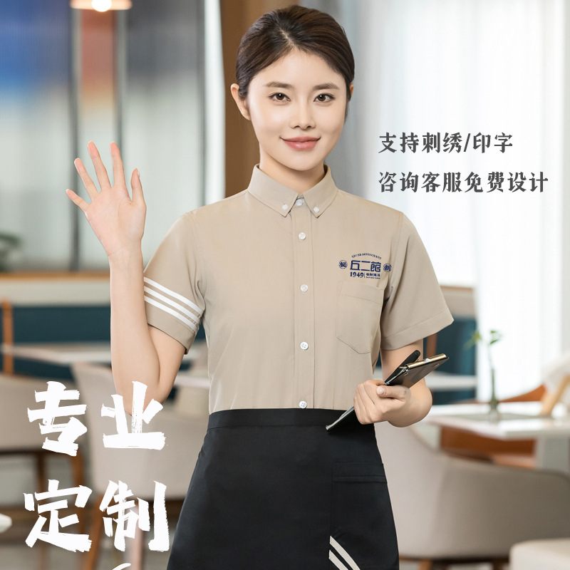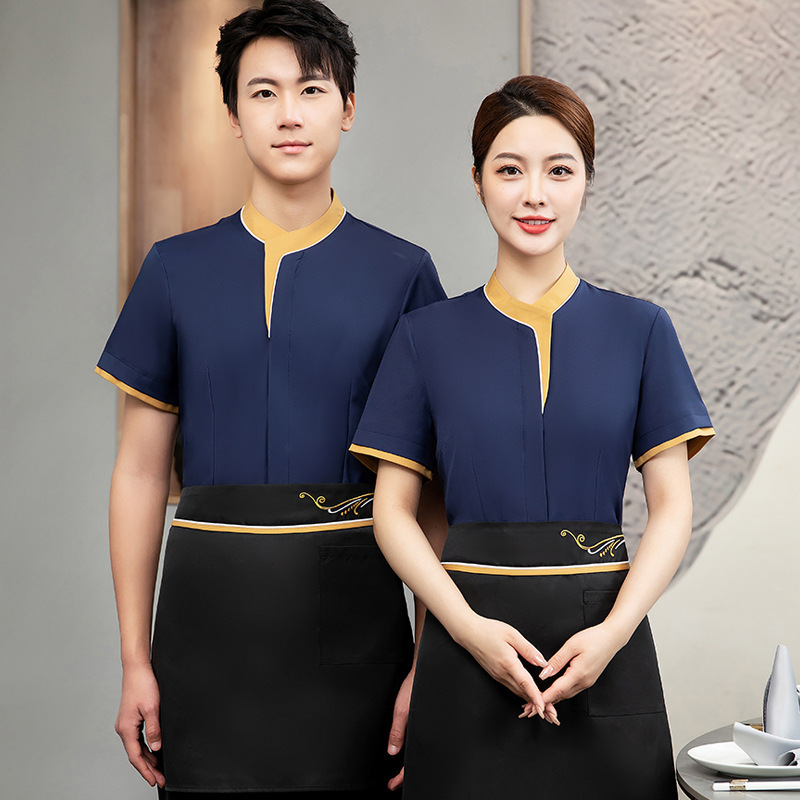 Restoran Cina pelayan pakaian kerja lengan pendek hotel gaya Cina katering rumah teh klub hot pot shop depan kantor pakaian kerja