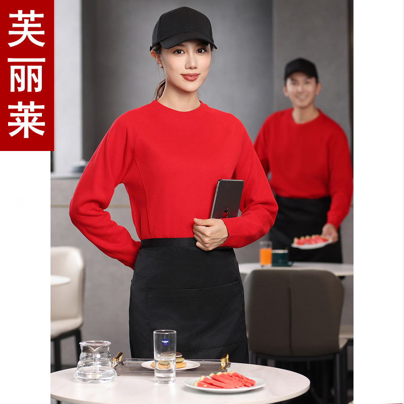 Baju kerja pelayan katering, kaos lengan panjang restoran hotel hot pot restoran restoran barbekyu toko teh susu sweater musim gugur dan musim dingin