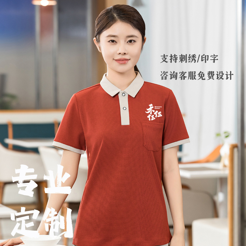Pakaian Kerja T-Shirt Katering Hot Pot Restoran Makanan Cepat Restoran Wanita Barbekyu Toko Pelayan Pakaian Kerja Kerah Lap Lengan Pendek Cetak Logo
