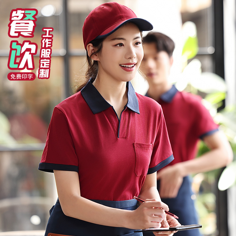 Pelayan restoran, baju kerja Restoran Cepat makanan, kaus kerah lengan pendek, pakaian kerja toko teh susu barbekyu steak, makanan ringan, kaus restoran, pakaian musim panas