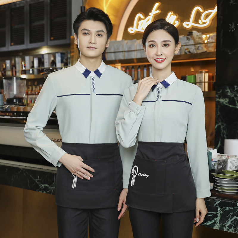 T-shirt katering pelayan, baju kerja lengan panjang musim gugur dan musim dingin restoran Cafe restoran depan kantor pakaian kerja pria dan wanita