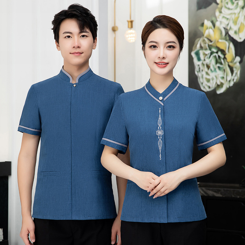 Pakaian kerja membersihkan pria dan wanita, lengan pendek properti komunitas pakaian pembersih kamar hotel bibi pelayan musim panas bernapas