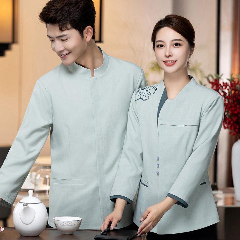 Pakaian Hotel gaya Cina rumah teh artis restoran pelayan pakaian kerja hotel katering musim semi, musim gugur dan musim dingin pakaian lengan panjang