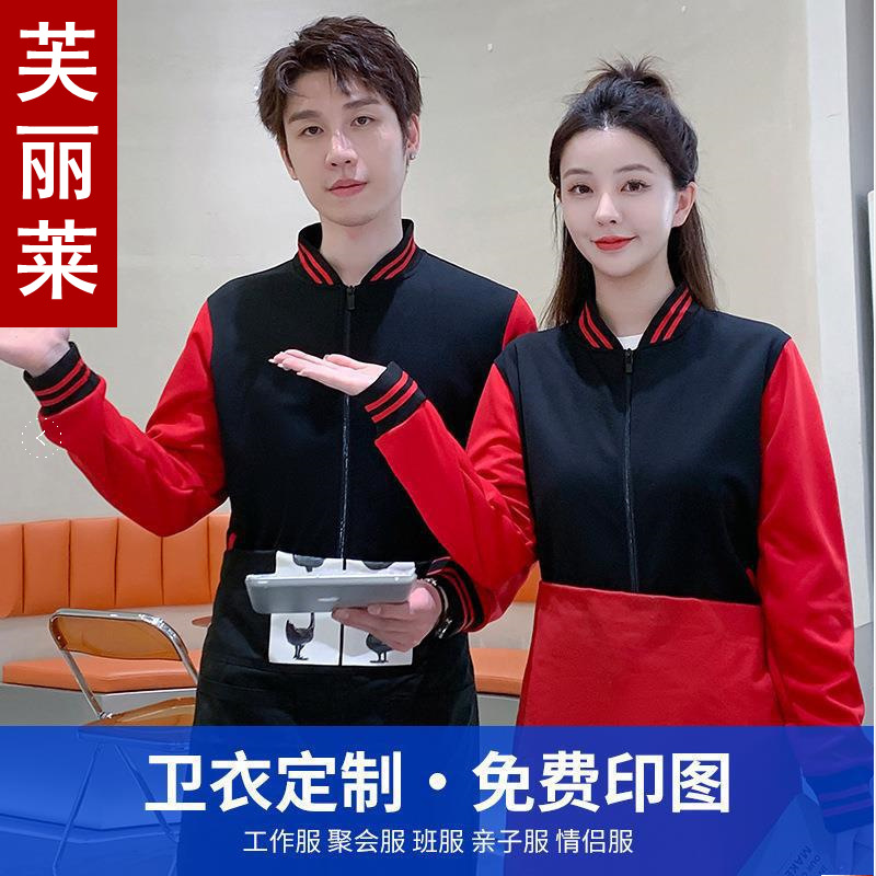 Pelayan lengan panjang musim gugur dan musim dingin sweter Cina dan Barat restoran hot pot restoran prasmanan kantin memanggang pria dan wanita T-shirt overall