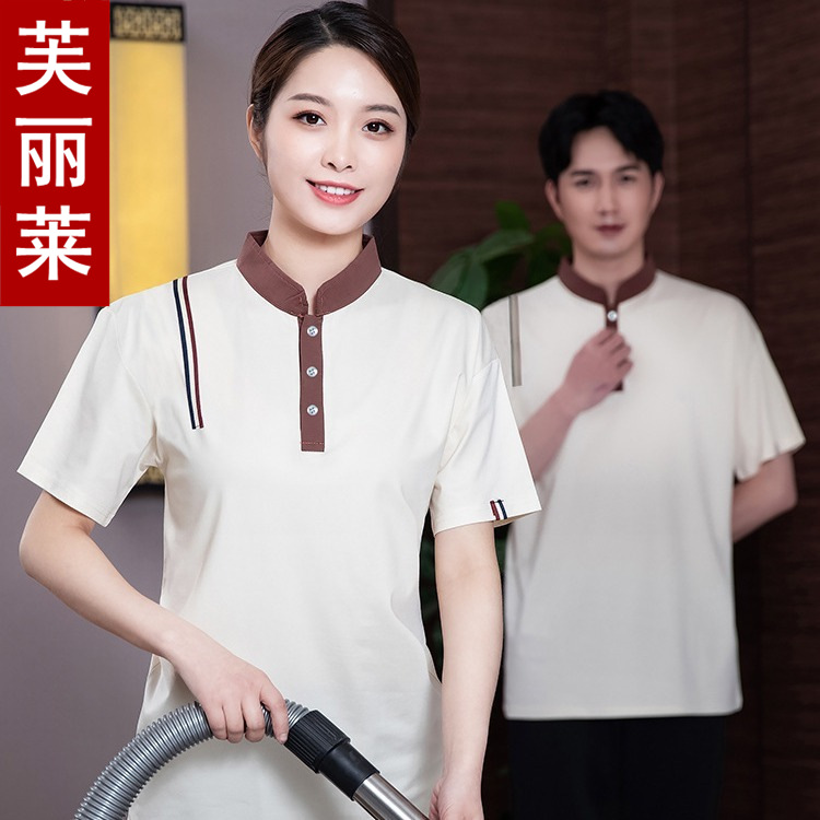 Pakaian kerja membersihkan rumah tangga pria dan wanita lengan pendek dalam stok musim semi dan musim panas properti pembersih kamar hotel seragam pelayan
