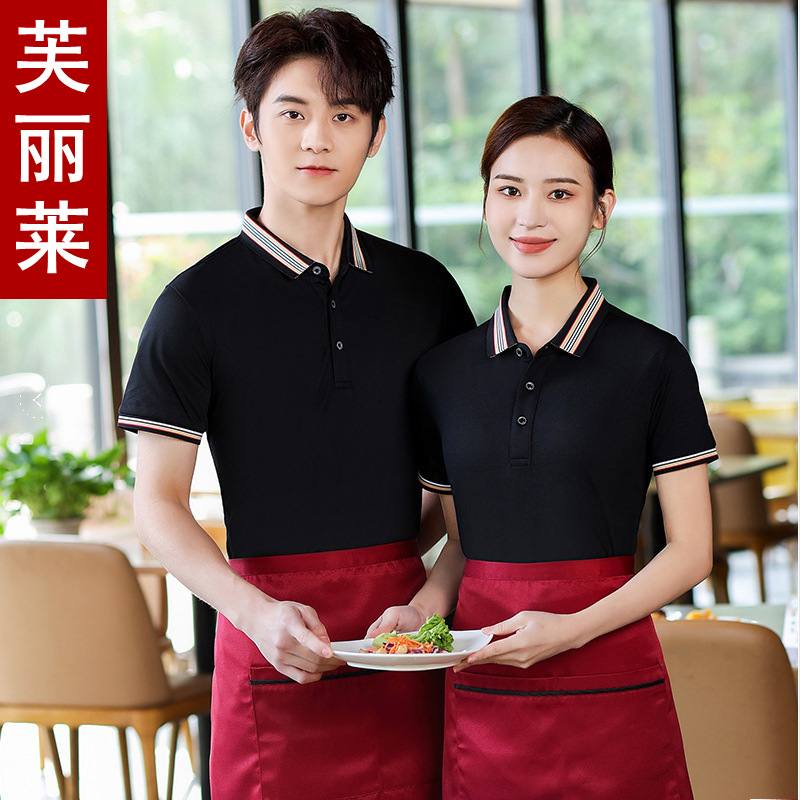 Pelayan makan pria lengan pendek restoran hotel restoran hot pot restoran barbekyu toko musim panas kerah pakaian kerja cetak wanita