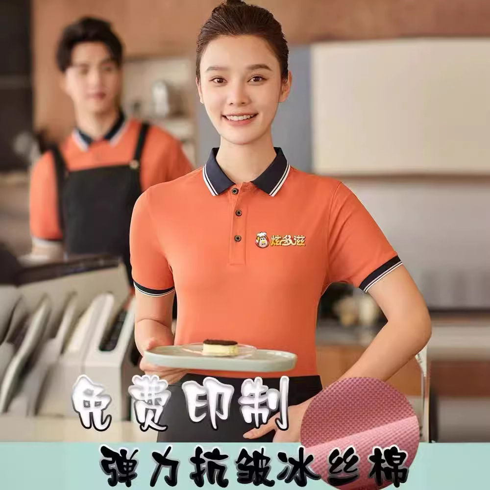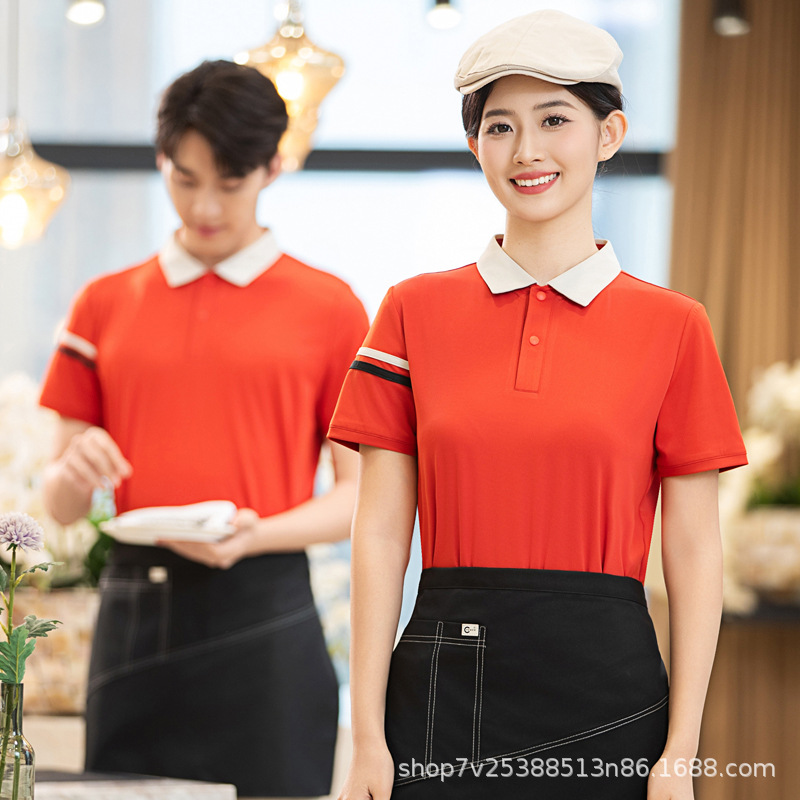 T-shirt musim panas pakaian kerja setengah lengan untuk pelayan katering pakaian susu teh restoran hot pot hotel pakaian kerja pria dan wanita cetak