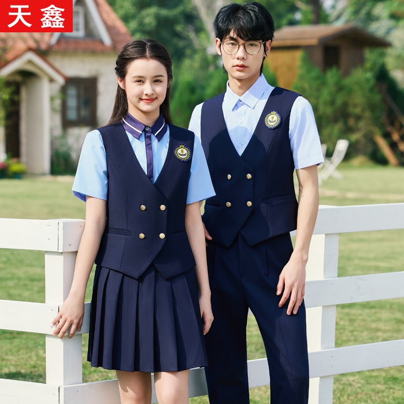 Setelan Pakaian Kerja Pelayan Gaya Kampus Rok Lipit Rompi Profesional Model Pria dan Wanita Pakaian Kerja Manajer Hotel Musim Panas