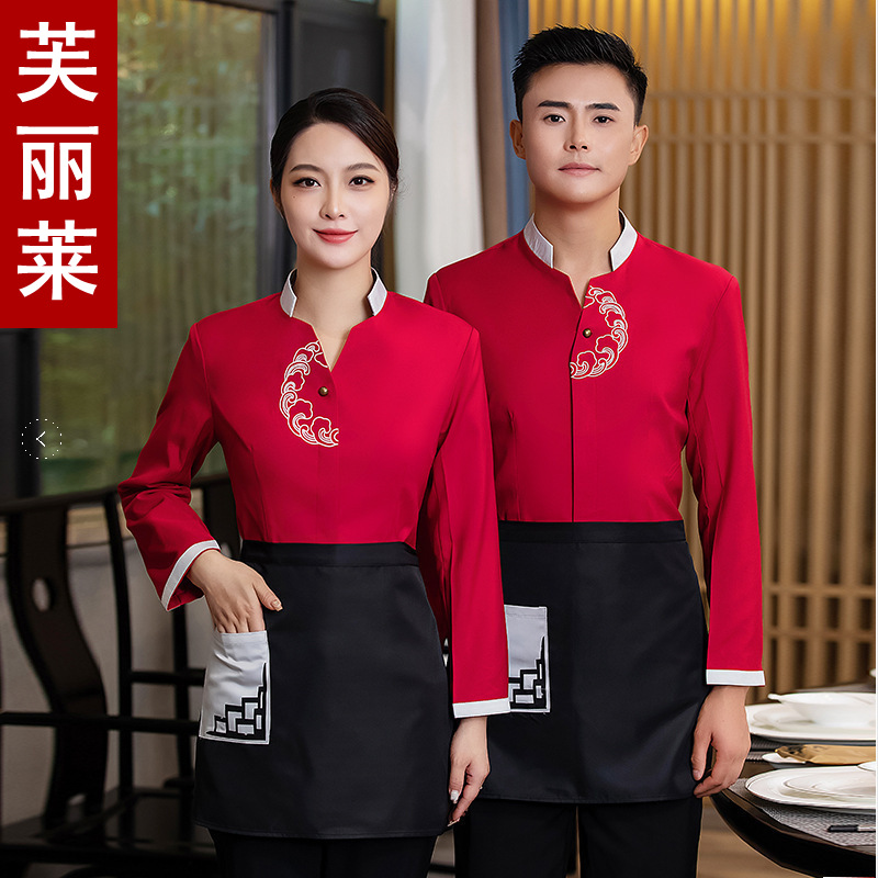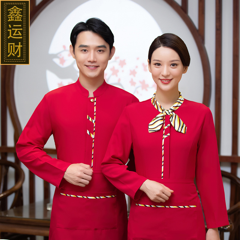 Pelayan hotel lengan panjang, pakaian kerja pelayan hotel lengan panjang restoran Cina untuk rumah teh restoran pot panas Restoran musim gugur dan musim dingin
