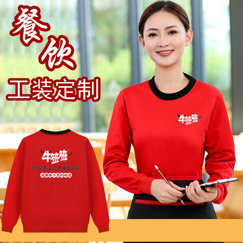 Sweater tipis buat katering hot pot restoran pelayan pakaian kerja toko barbekyu mantel musim gugur dan musim dingin pakaian kerja perusahaan pakaian pabrik