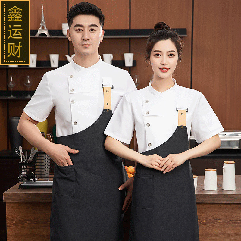 Pakaian koki gaya selebriti untuk pria, pakaian kerja pelayan Internet musim panas lengan pendek, Toko Kue kopi membuat kue