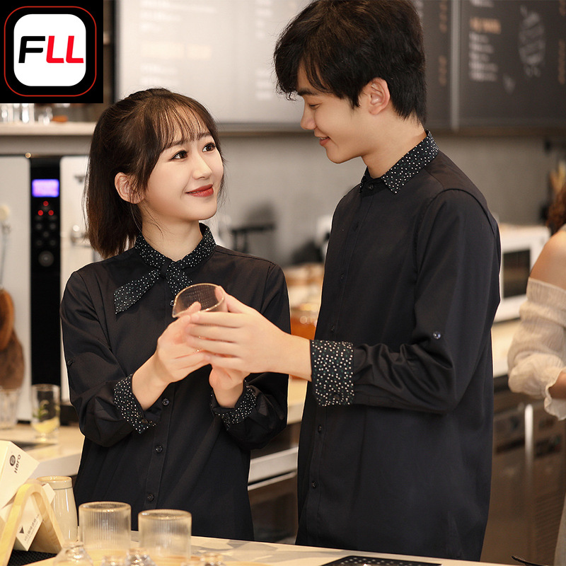 Baju kerja pelayan Fashion, untuk katering toko teh susu kue hot pot shop lengan panjang setelan pria dan wanita musim gugur dan musim dingin