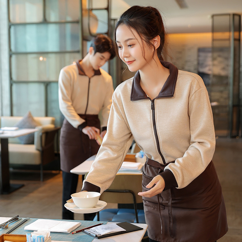 Pelayan Hotel baju kerja lengan panjang restoran katering hot pot restoran memanggang supermarket sweater ritsleting musim gugur dan musim dingin pakaian kerja