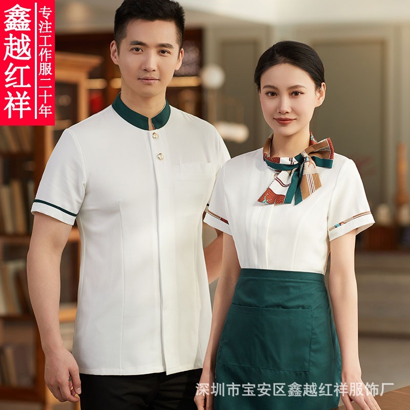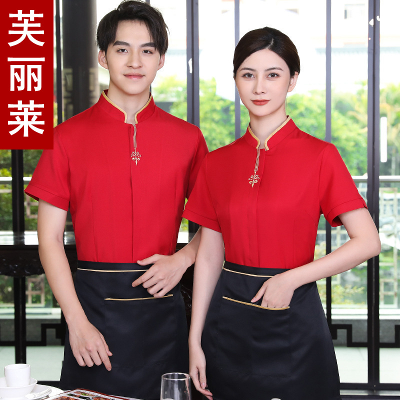 Pelayan Hotel pakaian kerja wanita lengan pendek musim panas restoran katering rumah teh restoran cina pot panas restoran pakaian setelan