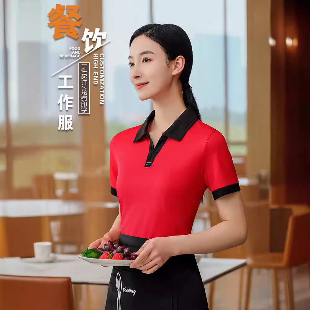 Pelayan lengan pendek pakaian kerja T-shirt dicetak logo katering hotel hot pot restoran supermarket musim panas polo shirt setengah lengan
