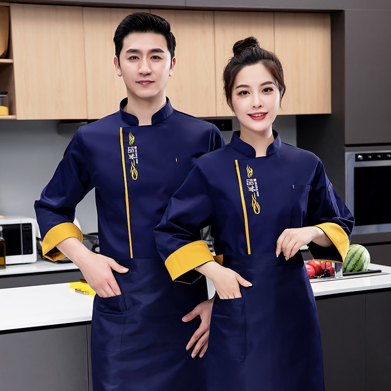 Baju kerja koki restoran makan, lengan panjang toko memanggang hotel restoran Barat, pakaian koki dapur, pelayan musim gugur dan musim dingin