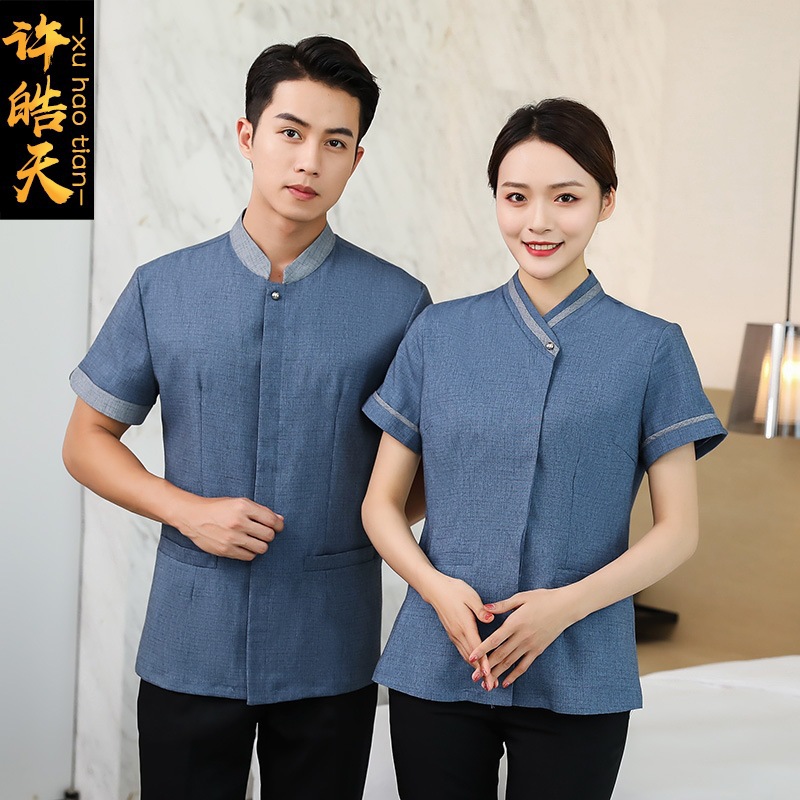 Pakaian Kerja Staf Pembersih Musim Panas Pakaian Pelayan Hotel Hotel Kelas Atas Wanita Lengan Pendek Seragam Bibi Pembersih Properti