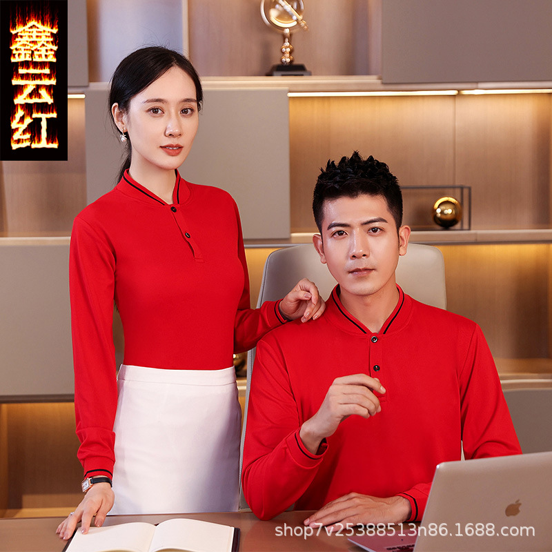 Hot pot pakaian kerja restoran lengan panjang, kaus pelayan pengiriman makanan restoran restoran makan khusus musim gugur dan musim dingin untuk wanita
