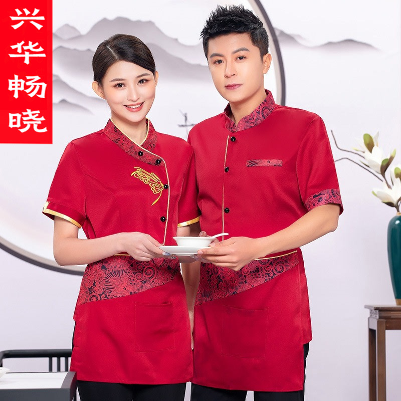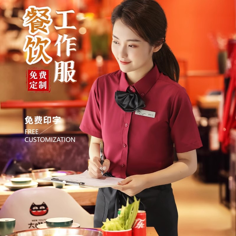 Baju kerja katering Hotel Cina wanita, baju pelayan restoran lengan pendek restoran pot panas Restoran musim semi dan musim panas