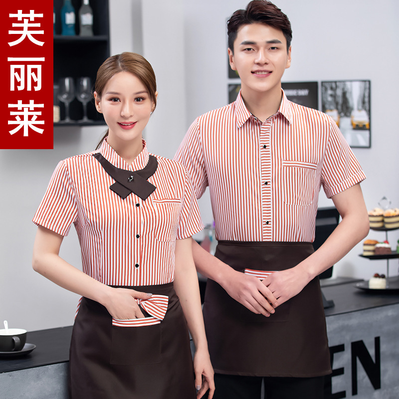 Baju kerja pelayan restoran Hotel baju kerja baju kerja restoran Barat lengan pendek baju kerja lengan bergaris musim panas