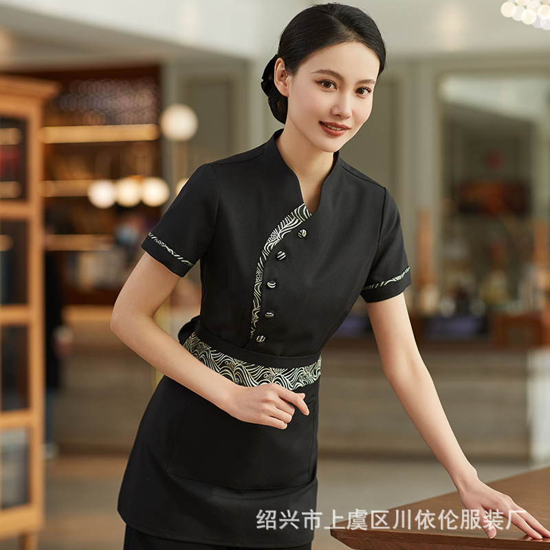 High-end pelayan Cina pakaian kerja lengan pendek hotel rumah teh restoran rumah pertanian makan depan kantor pakaian kerja wanita pakaian musim panas