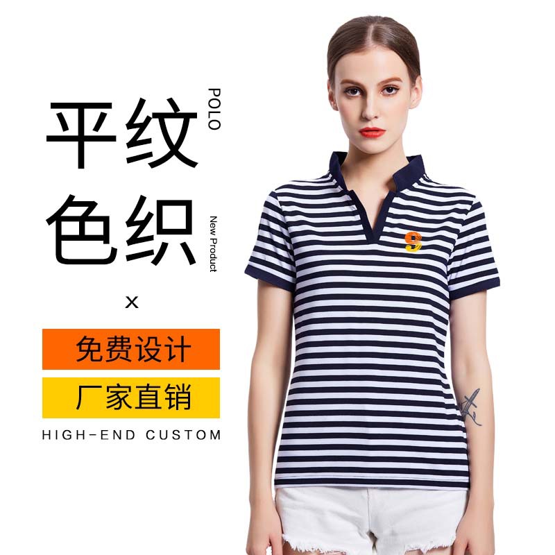 Polo kaus bergaris pria wanita, baju kerja pelayan lengan pendek leher V atasan pola cetak bordir