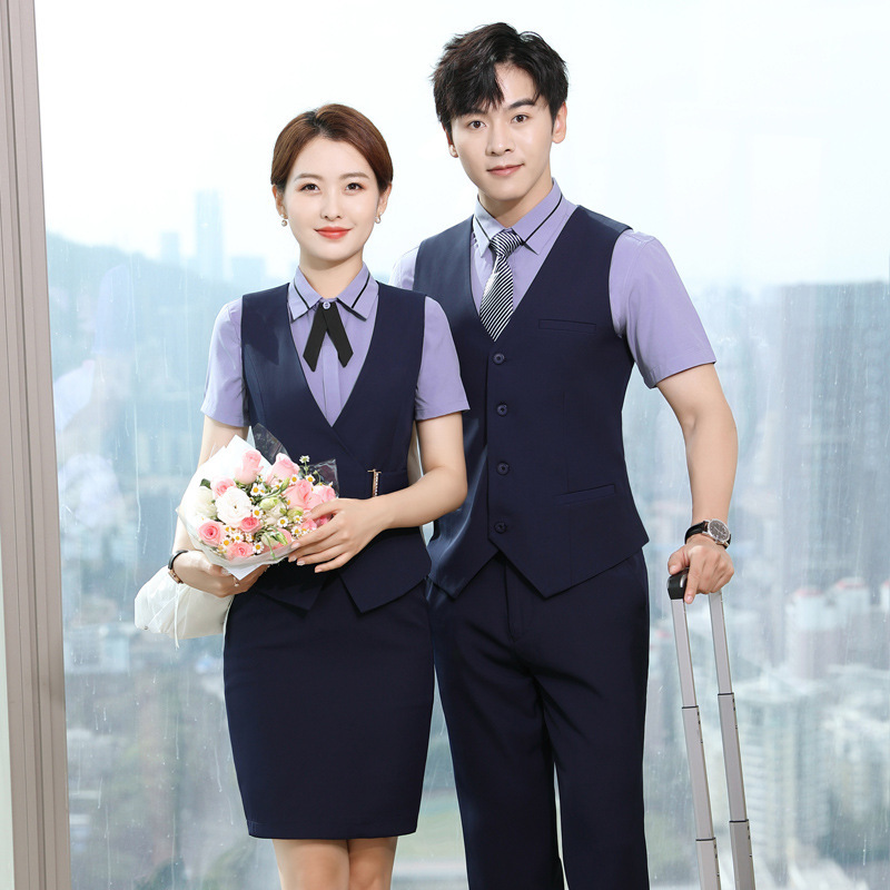 Meja depan Hotel pelayan pelayan rumah teh Cina layanan pelanggan klub katering pakaian kerja rompi profesional setelan musim panas wanita